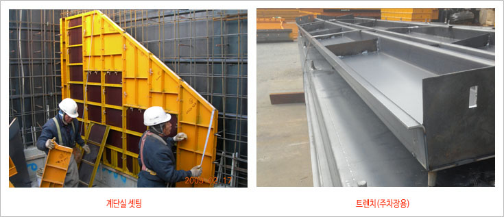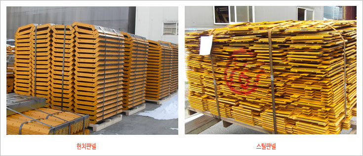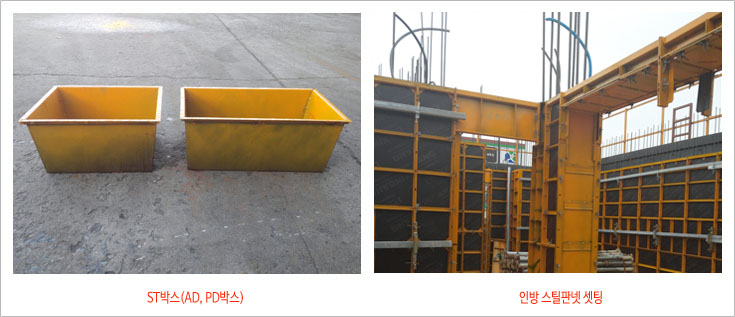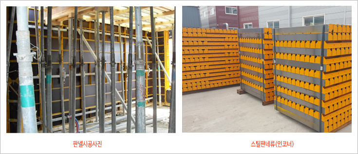 | STEEL PANEL류 | - 일반적인 PANEL과 동일한 형태로써 합판대신 콘크리트 타설면에 철판이 부착되어진다. - 면귀,결로,방수등의 시공시 용접부착하기 위하여 사용된다. - 형태에 따라 일자형과 꺾임형(HUNCH PANEL)등의 형태로 구분된다. - 또한 시공부위에 따라 다양한 명칭으로 사용된다. |