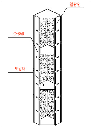 | 보STEEL PANEL | “BEAM PANEL”이라고도 불리우고, 상부 SLAB로부터 아래로 내여오는 수벽 즉 문 상부부위나 보 부위 옆면에 시공되는 판넬을 말함. | |