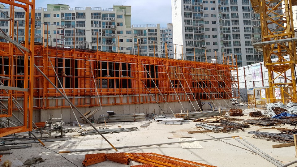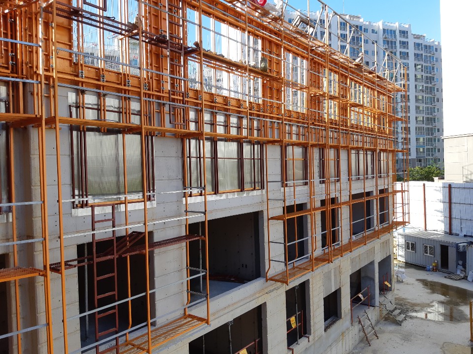 ● 업체명 : 한국건설(주) ● 현장명 : 목포옥암2차 한국아델리움 현장 ● 공 종 : "갱폼소음방지판넬"시공 ● 시공규모 : 아파트 2개동 전체 시공 ● 현장 민원현황 및 시공현황 - 현장 주위에 아파트가 바로 붙어 있어 알폼해체소음민원이 예상되는 현장으로 소음방지판넬을 적용햐여 시공함 - 한국건설은 알폼소음민원에 적극 해결하기 위하여 전 현장에 소음방지판넬을 적용하여 시공함으로써 기업 이미지 개선에 상당한 효과를 나타내고 있음 |